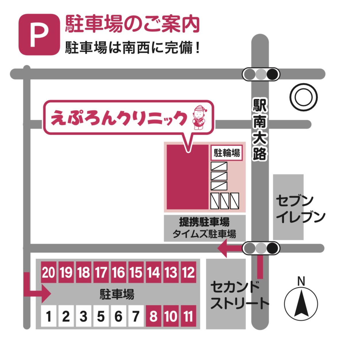 また、クリニック横のタイムズコインパーキングをご利用の方は、受付までお申し出ください。